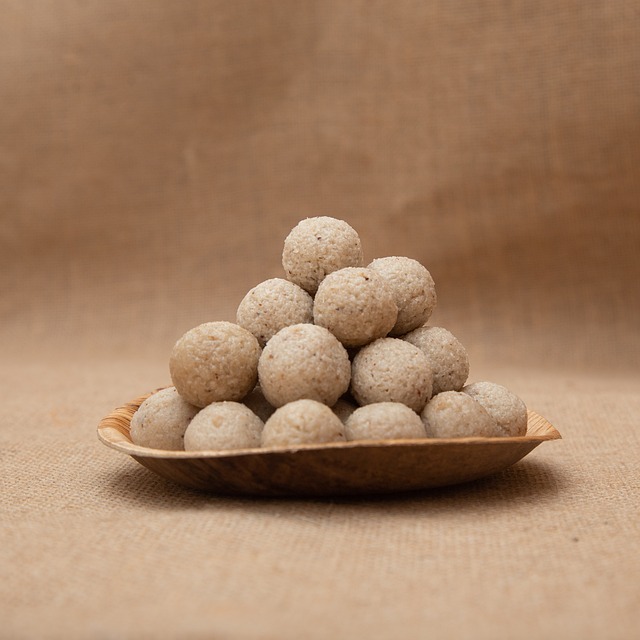 थाली पर चिकनाई लगाकर मिश्रण को फैला लें और जमने पर बर्फी के आकार की काट लें या छोटे–छोटे लड्डू बना कर रख लें।